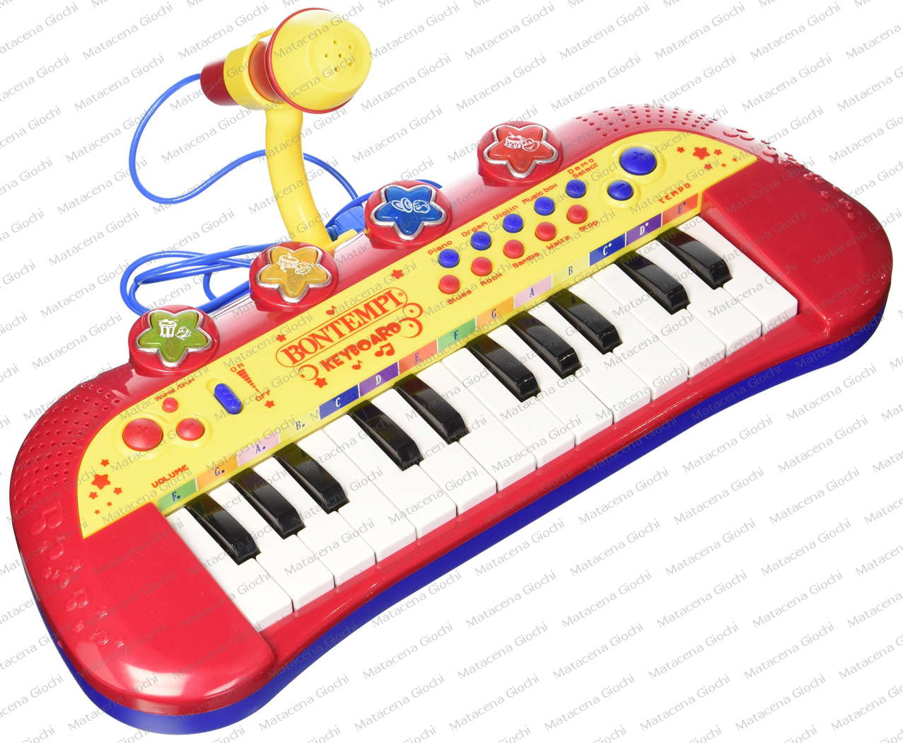 Adatto ai bambini sotto i 36 mesi, la tastiera elettronica Bontempi ha 24 tasti e un simpatico microfono per testare anche le urla... cioè le abilità canore dei vostri piccoli :D