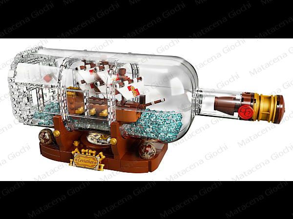Lo ha pensato Jake Sadovich, un patito fan dei brick che hanno reso famosa Lego. Si è ispirato a un vero modello che lo stesso aveva costruito anni addietro e ne ha pensato una riproduzione fedele in mattoncini. La sua geniale intuizione, il Leviathan in bottiglia, ha ottenuto i 10mila voti necessari per diventare un prodotto della linea Lego Ideas. Mantenendo intatto il suo fascino e i suoi tratti caratteristici (ivi compresa la simulazione del mare in mattoncini azzurri realizzata sul fondo della bottiglia con oltre 280 elementi acqua blu trasparenti al suo interno.).